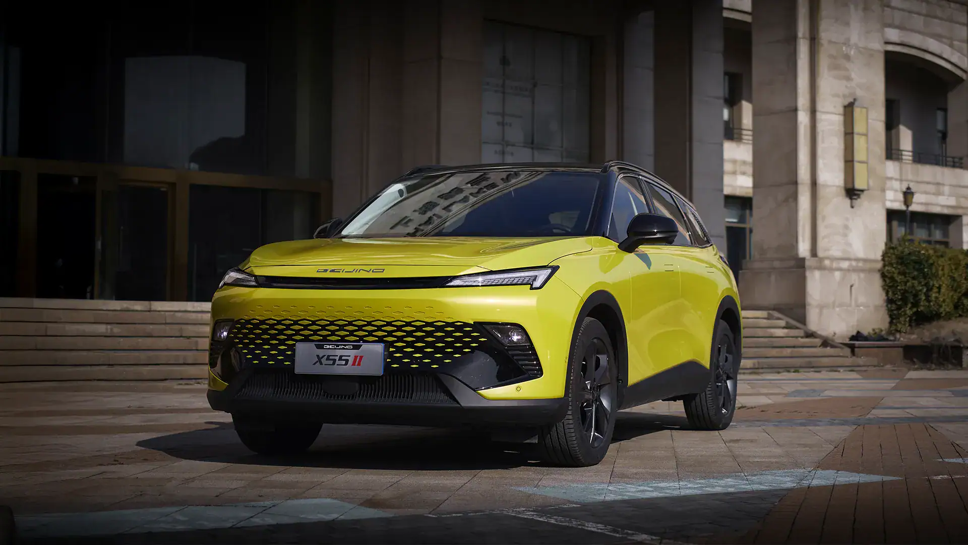 BAIC X55 prináša svieži pohľad na moderné SUV. Elegantné línie karosérie, výrazná predná maska, športové detaily a plne LED osvetlenie mu dodávajú prémiový vzhľad. Dizajn vychádza z filozofie „Motion and Power“ – pohyb a sila – a presne to cítiť v každom detaile tohto vozidla.
